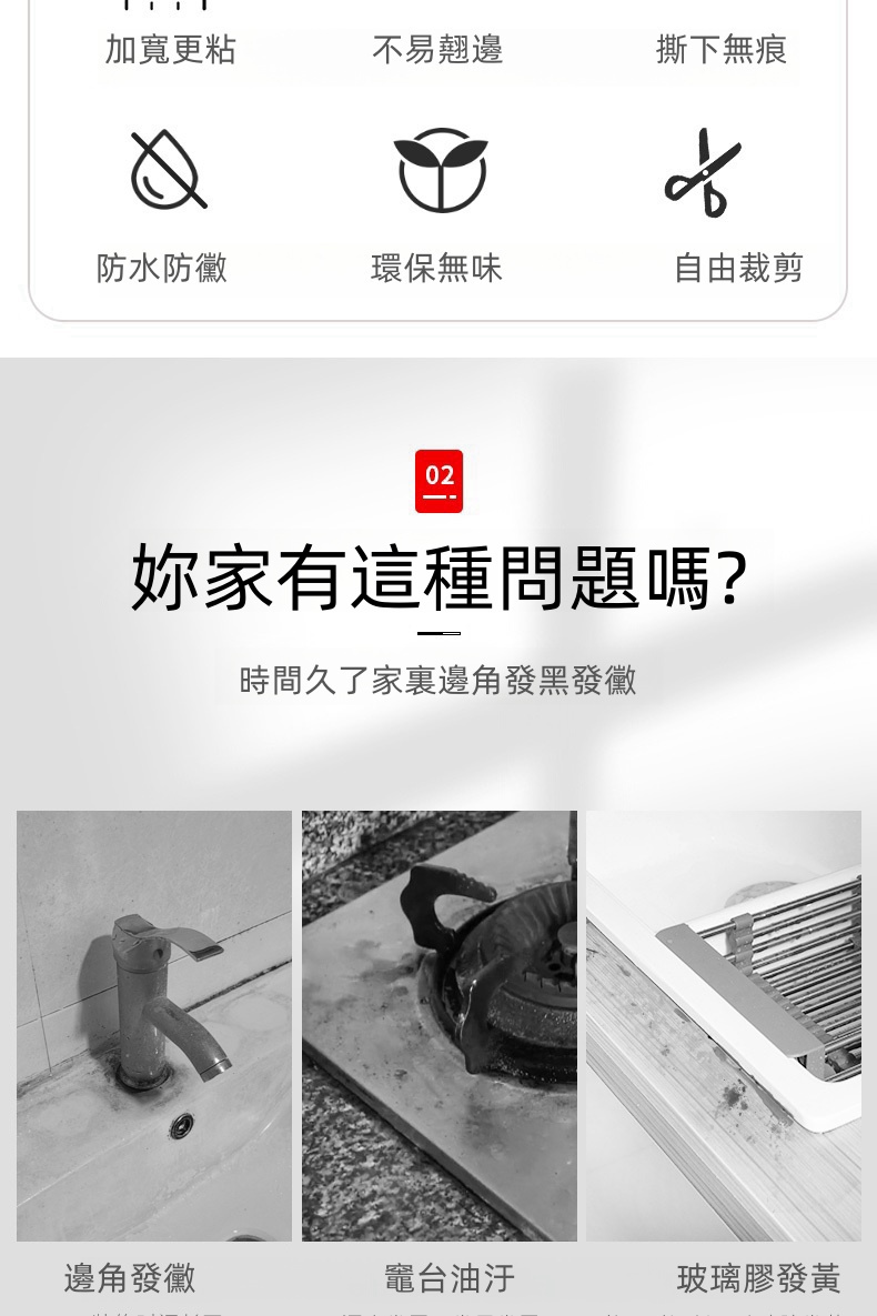 5分鐘前限時搶購 美縫貼防水防霉廚房水槽洗碗灶台封邊擋水條,衛生間馬桶邊緣縫隙貼 - 【98%客戶的選擇】5入組-NT$1150