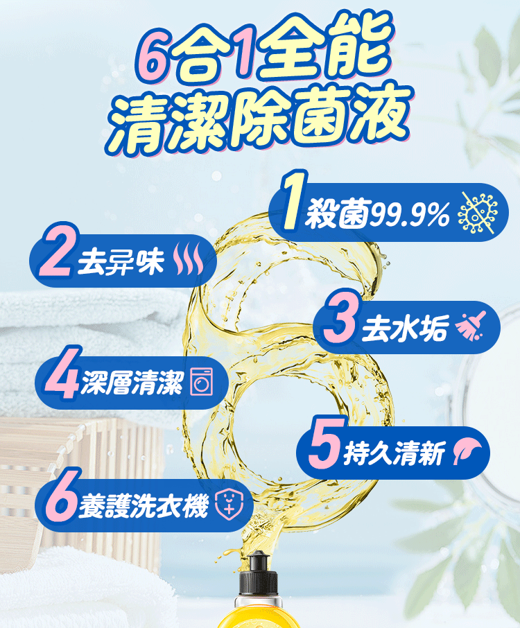 4分鐘前還洗衣機一個清新 ,一鍵免浸泡 洗衣機抑菌清潔液 淡淡清香_你值得擁有 - 【狂殺特賣】7入組 NT$1390